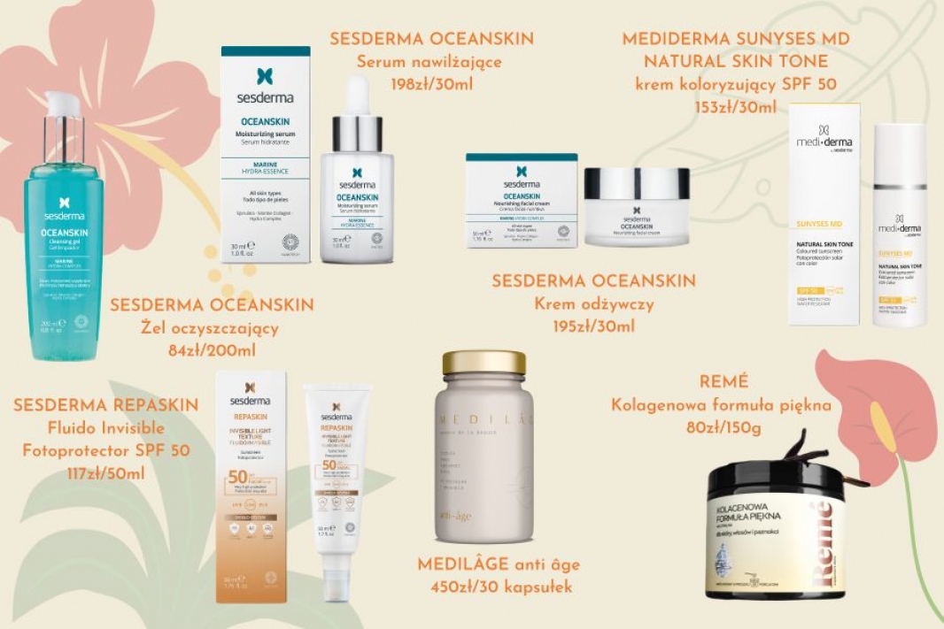 Niezależnie od wieku i rodzaju skóry włączenie produktów nawilżających do codziennej rutyny pielęgnacyjnej to podstawa. To także warunek zachowania jej młodego wyglądu. Odpowiedni poziom nawilżenia opóźnia pojawienie się pierwszych oznak starzenia, zapewnia blask i sprawia, że nasza cera wygląda świeżo i promiennie. Sesderma Oceanskin to linia bazująca na składnikach aktywnych morskiego pochodzenia (siprulinę, morski kolagen, elastynę, wyciąg z wodorostów, ekstrakt z kawioru), które zwiększają i utrzymują naturalne nawilżenie skóry. Ta pielęgnacja jest arcyprzyjemna, pachnąca i dziecinnie prosta, bo obejmuje zaledwie 2 produkty – trójfazowy żel oczyszczający (żel, olejek, emulsja) 84zł/200ml oraz w zależności od typu skóry lekkie serum 198zł/30ml lub bogaty krem 195zł/30ml.