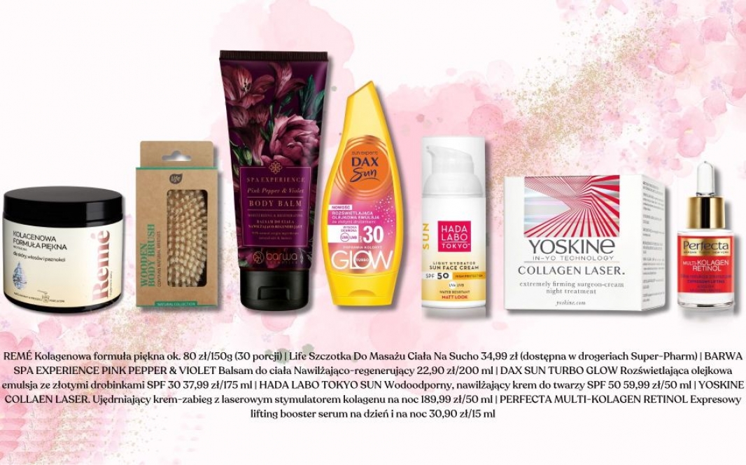 Najliczniejsze białko włókniste jest głównym składnikiem tkanki łącznej, która pełni niezwykle ważną rolę w utrzymaniu jędrności naszej skóry. Kolagen ma dużą wytrzymałość na rozciąganie i wraz z innym białkiem - keratyną odpowiada za elastyczność tkanek. Utrzymywanie kolagenu na odpowiednim poziomie (w sprawdzeniu tego może pomóc badanie stężenia ICTP - wskaźnika poziomu przemian kolagenu w organizmie) jest ważne w szczególności w przypadku kobiet, bo wpływa na zdrowy, młody wygląd skóry, włosów i paznokci, ale także działa korzystnie na jelita, przeciwdziałając stanom zapalnym. Również podczas ciąży hormony kobiece zmieniają metabolizm kolagenu, aby skóra była bardziej elastyczna i warto wtedy szczególnie pilnować poziomu kolagenu. Pomoże on też stymulować wzrost osłabionych ciążą włosów. Kluczowym składnikiem stymulującym naturalną produkcję kolagenu jest witamina C, właściwie bez niej organizm nie jest w stanie produkować tego białka. Warto zwrócić uwagę na jedzenie bogate w składniki odżywcze wspomagające powstawanie naturalnego kolagenu: prolinę (białka jaj, kiełki pszenicy, grzyby, szparagi), glicynę (skóra kurczaka, żelatyna, bulion kostny), witaminę C: brokuły, cytrusy, papryka, jagody oraz białko, ponieważ stałe dostarczanie go w diecie zapewnia ona stały profil aminokwasowy do tworzenia nowych białek strukturalnych. Superpomocne są także oczywiście odpowiednie suplementy najlepiej zawierające sprawdzony i przebadany VERSIOL oraz witaminy i minerały. Takim produktem jest REMÉ Kolagenowa formuła piękna ok. 80 zł/150g (30 porcji), poza Verisolem bogata także w witaminy A, C, B, miedź, cynk, selen i mangan. Preparat ten nie zawiera laktozy, jest bezglutenowy oraz bez dodatku cukrów (zawiera naturalnie występujące cukry) i konserwantów.