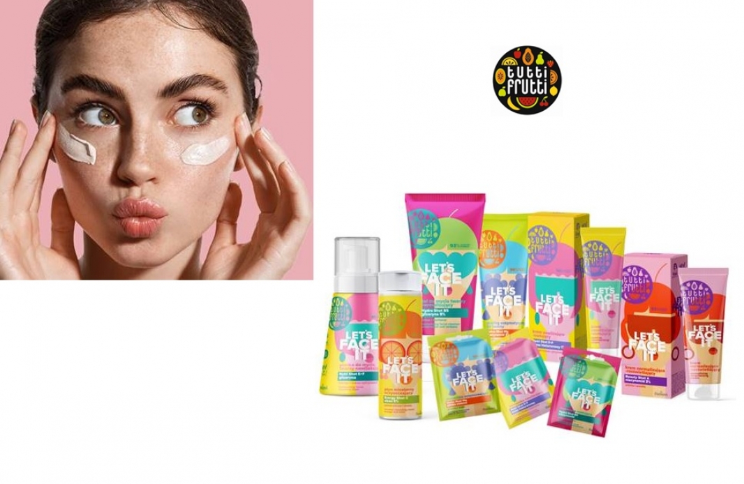 Rozkoszna pielęgnacja z kosmetykami Tutti Frutti skradła mnóstwo serc. Teraz, na tych, którzy pokochali niespotykane i intrygujące połączenia owoców z ziołami i odżywczymi shotami, czeka prawdziwe zaskoczenie! W odpowiedzi na potrzeby konsumentów marka Tutti Frutti rozszerza swoje portfolio o nową linię produktów do kompleksowej pielęgnacji twarzy – Let’s Face It. Kosmetyki posiadają innowacyjne, multifunkcyjne formuły o wysokim indeksie substancji pochodzenia naturalnego (minimum 93%), a do tego są w 100% wegańskie. Dzięki mocy składników aktywnych takich jak, niacynamid, gliceryna, papaina, aloes, kwas hialuronowy czy zielona glinka możesz osiągnąć efekty o jakich zawsze marzyłaś.
