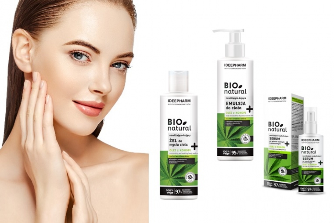 O oleju konopnym warto pamiętać już na etapie wyboru kosmetyku pod prysznic, by w trakcie oczyszczania dbać o jej naturalny mikrobiom. Nawilżająco-kojący żel do mycia ciała z linii BIO natural od Instytutu Dermokosmetyków Ideepharm koi i przywraca komfort. Jego formuła zawiera olej konopny, kompleks prebiotyczny oraz alantoinę i ma właściwości nawilżające i wygładzające. Po kąpieli o ciało zadba natomiast BIO natural Nawilżająco-kojąca emulsja do ciała. Zawiera olej konopny, hydromanil, masło shea oraz kompleks prebiotyczny. Efekt? Wzmocniony naturalny mikrobiom skóry i jej flora bakteryjna, długotrwałe nawilżenie, złagodzenie podrażnień, zniwelowane uczucie szorstkości i swędzenia. Olej konopny ma pozytywny wpływ również na kondycję włosów, ponieważ pozwala na zachowanie prawidłowego nawilżenia i utrzymanie równowagi lipidowej. Za jego sprawą włosy stają się bardziej elastyczne, odporne na uszkodzenia i odzyskują blask. Dlatego to właśnie olej konopny stanowi najważniejszy składnik ułatwiającego rozczesywanie BIO natural Nawilżająco-wygładzającego serum do włosów bez spłukiwania. Po serum powinny sięgnąć osoby z włosami suchymi, zniszczonymi lub wymagającymi regeneracji, a także te o podrażnionej albo wrażliwej skórze głowy. Kosmetyk zawiera również proteiny pszeniczne oraz kompleks prebiotyczny.