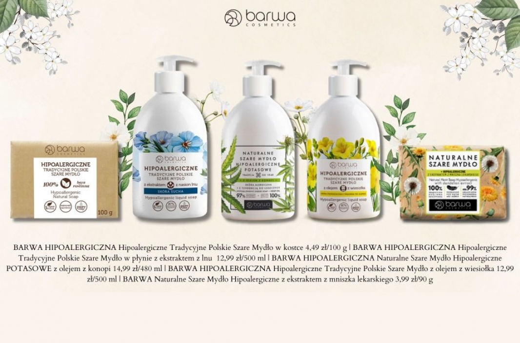 Barwa naturalne szare mydło jest hipoalergiczne, przebadane pod kątem pielęgnacji skóry z AZS i łuszczycą. Idealnie nadaje się do pielęgnacji skóry wrażliwej, dla alergików, do przemywania ran, higieny intymnej, do prania ubrań osób ze skłonnością do alergii… można je stosować do higieny rąk, ciała, włosów i skóry głowy.