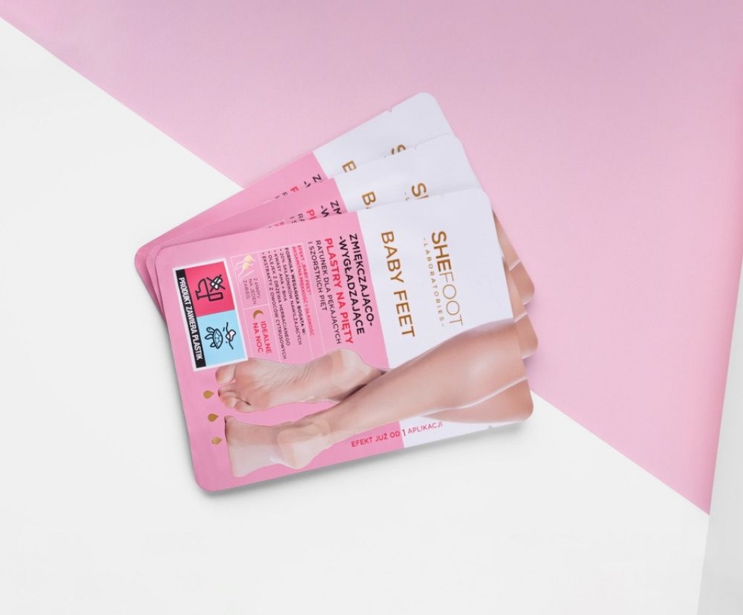 Marka Shefoot, specjalista w pielęgnacji skóry stóp wprowadza na rynek nowatorskie plastry na pięty, które w łatwy i komfortowy sposób zapewniają uzyskanie efektu ”baby feet”. Zmiękczająco-wygładzające plastry skutecznie przywracają piętom aksamitną gładkość i miękkość! Już po pierwszym użyciu zauważysz poprawę wyglądu i kondycji skóry.
