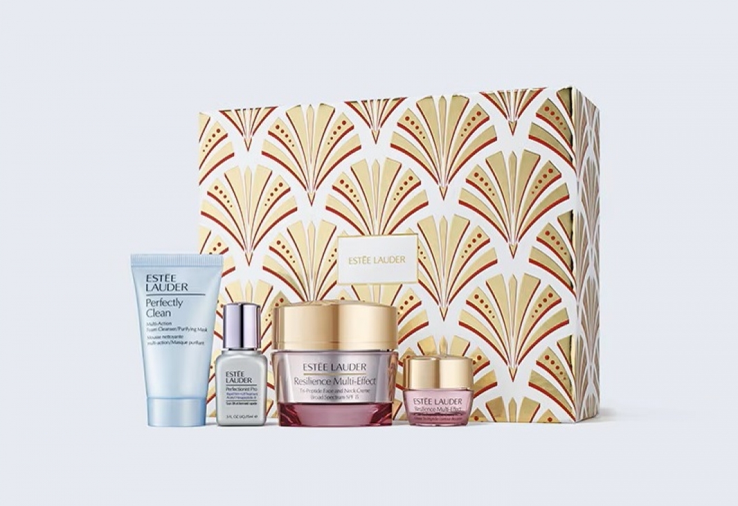 Dla wielu kobiet marka Estée Lauder to synonim luksusu i skutecznej pielęgnacji. Zestaw The Radiance Routine Magical Skincare Moments pomoże skórze przywrócić promienny wygląd i pozwoli stworzyć pełen rytuał pielęgnacyjny. Znajdziemy w nim: krem do stosowania na twarz i szyję z filtrem Resilience Multi-Effect Tri-Peptide Face and Neck Creme SPF 15 (pełnowymiarowy - 50 ml), piankę oczyszczającą Perfectly Clean Multi-Action Foam Cleanser lub maskę Purifying Mask The Radiance Routine Magical Skincare Moments deluxe (w wersji podróżnej -30 ml), serum Perfectionist Pro Rapid Firm + Lift Serum Hexapeptides 8+9 (15 ml) oraz krem pod oczy Resilience Multi-Effect Tri-Peptide Eye Creme (w wersji travel - 5 ml)