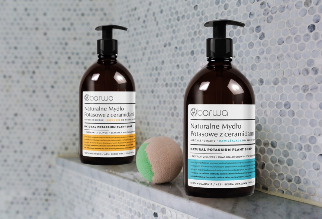 Mycie, które jednocześnie pielęgnuje skórę, to kluczowy wyróżnik nowych mydeł potasowych w płynie od Barwa Cosmetics. Ich formuły wpisują się również w trend wielofunkcyjności – wykorzystywane do pielęgnacji rąk, ciała i włosów, a także jako środek do prania ubranek dziecięcych i ubrań alergików. Zawierają składniki mające na celu odbudowę i ochronę bariery hydrolipidowej skóry: ceramidy, oliwę z oliwek oraz, w zależności od wariantu, betainę, sok z aloesu lub kwas hialuronowy.