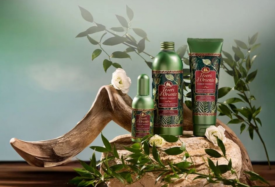 Formuły produktów Forest Therapy zostały wzbogacone o aromaty inspirowane olejkami eterycznymi uwalnianymi przez drzewa – tak, by odtworzyć uczucie świeżego powietrza, ciszy i regeneracji, jakiego doświadcza się podczas spaceru po lesie.