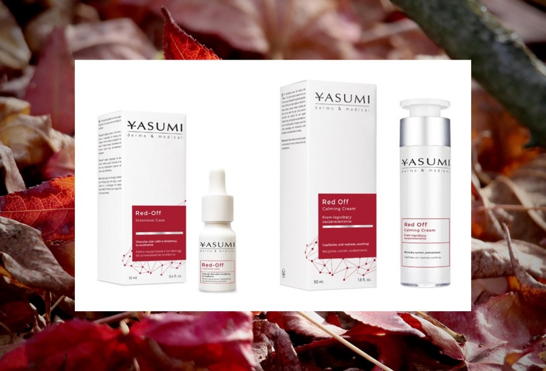 Yasumi Red off Calming Cream - łagodzący krem redukujący zaczerwienienia do codziennej pielęgnacji skóry. Zawiera unikalny tetrapeptyd Teleangyn ®, który obkurcza i uszczelnia naczynia włosowate. Ponadto w składzie znajduje się także wyciąg z ruszczyka kolczastego – zmniejsza zaczerwienienia, redukuje rumień, opuchliznę i cienie pod oczami, alfa bisabolol – wycisza skórę, łagodzi podrażnienia, działa przeciwzapalnie, olej z pestek winogron – nawilża i głęboko ją odżywia. Krem ma zielony kolor, dzięki czemu kamufluje niedoskonałości cery.