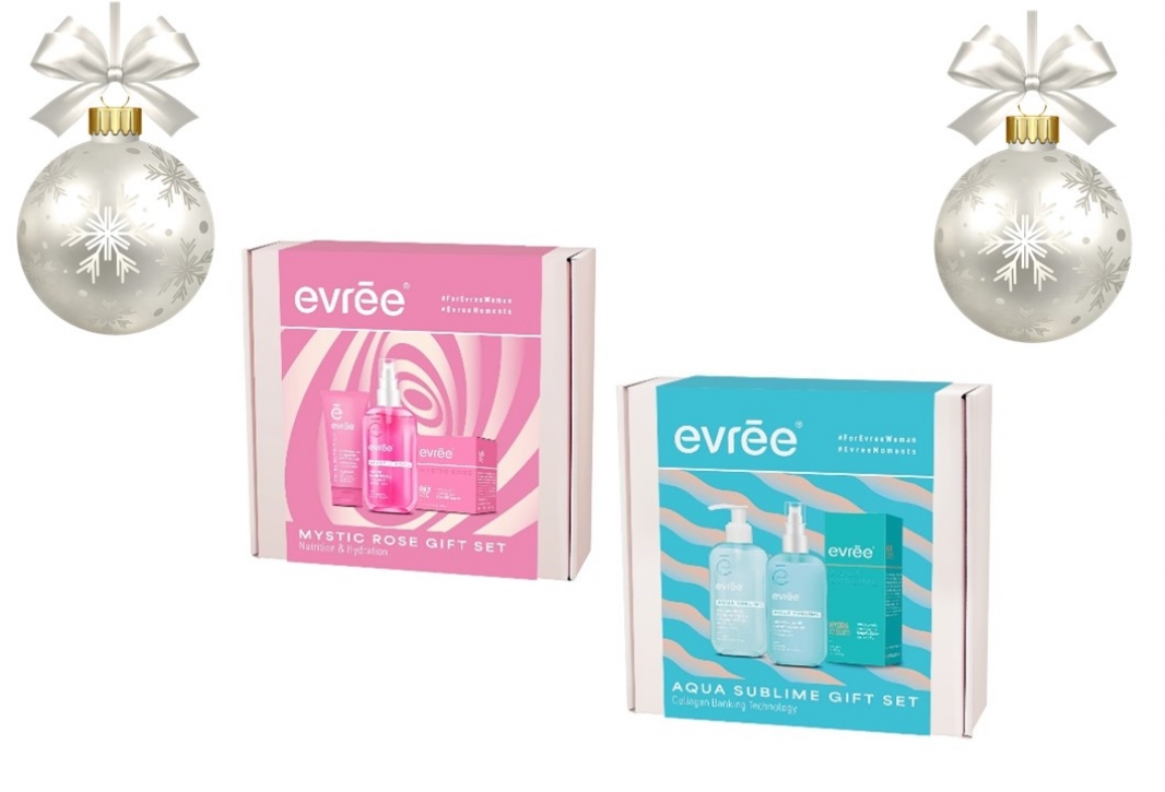 Polska marka evrēe przygotowała dwa wyjątkowe zestawy prezentowe. Pierwszy z nich zawiera trzy kosmetyki, w tym kultowy różany tonik Mystic Rose. Drugi natomiast to trio produktów Aqua Sublime stworzonych zgodnie z trendem ‘Collagen Banking Technology’. Designerskie opakowania skrywają wielofunkcyjne preparaty, które łączą najnowsze osiągnięcia naukowe w dziedzinie kosmetologii ze składnikami naturalnymi i biotechnologicznymi w efektywnych stężeniach.