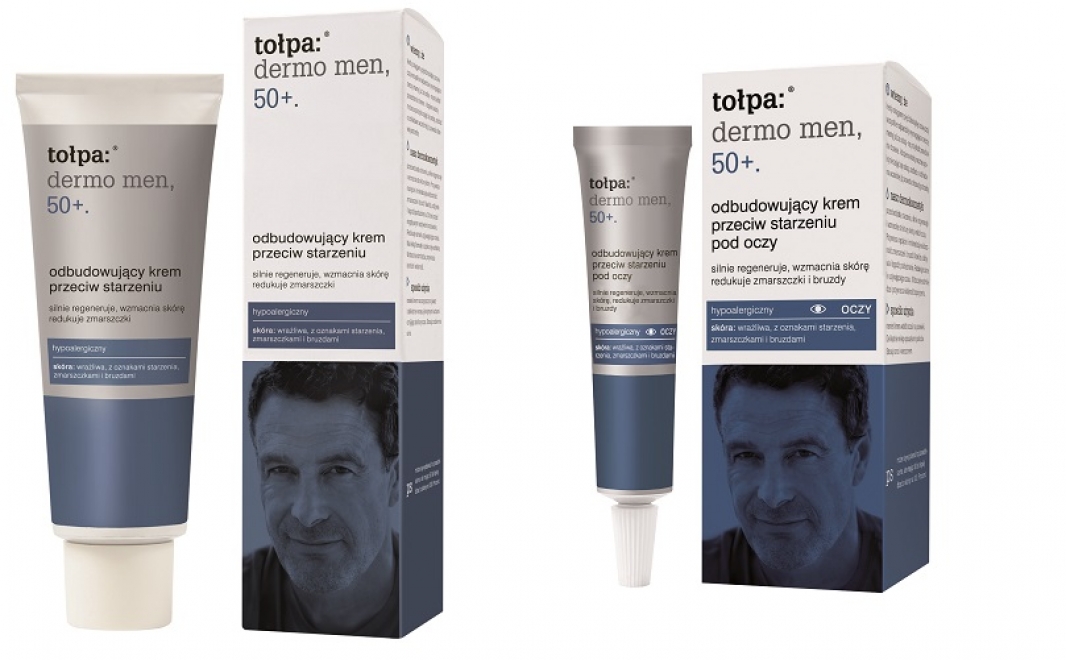 Prezentujemy 2 nowe kosmetyki marki Tołpa Dermo Men: odbudowujący krem przeciw starzeniu oraz rodbudowujący krem przeciw starzeniu pod oczy przeznaczone dla Panów w wieku 45+.