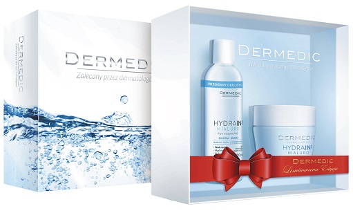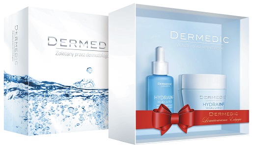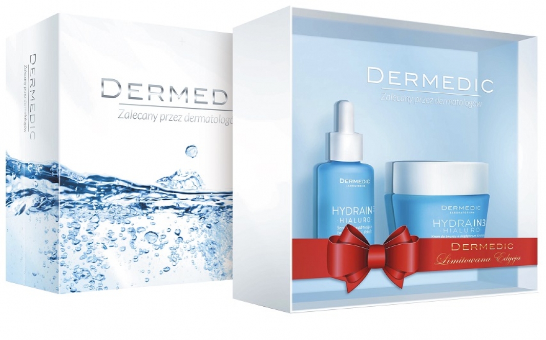 Zestawy kosmetyków Dermedic można nabyć w eleganckich pudełkach. W zestawach znalazły się bestsellery Dermedic - kosmetyki z serii nawilżającej Hydrain 3 Hialuro, przeznaczone do codziennej pielęgnacji skóry suchej i odwodnionej. Dermokosmetyki Dermedic są hypoalergiczne i mogą być stosowane nawet przez osoby o bardzo wrażliwej skórze.
