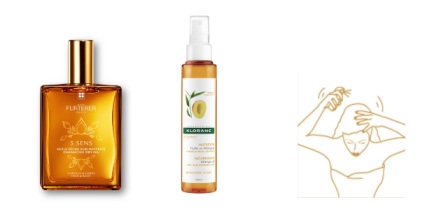 Spryskaj suchym olejkiem włosy, np. 5 SENS René Furterer (z odległości około 20 cm) i masuj włosy oraz skórę głowy. Następnie załóż na głowę ciepły ręcznik i pozostaw na 15-20 minut, aby pozwolić mu się wchłonąć; następnie umyj włosy.