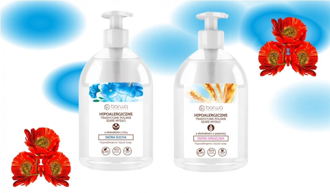 Polska marka Barwa, czerpiąc z natury to, co najlepsze, poszerza swoją gamę o hipoalergiczne tradycyjne polskie szare mydła, opracowane z myślą o codziennych potrzebach skóry suchej i wrażliwej. Kosmetyki oparte na ekstraktach roślinnych: z pszenicy i lnu, odżywiają i regenerują naskórek, nie powodując podrażnień. Hipoalergiczne, naturalne składniki zapewniają przyjemność i bezpieczeństwo stosowania.