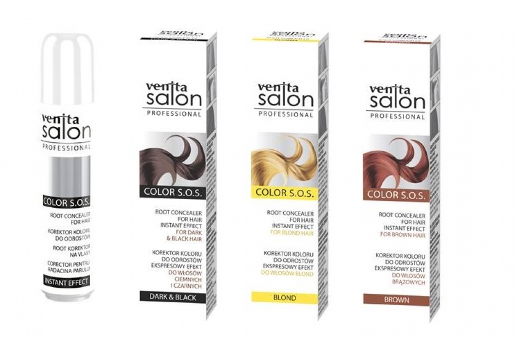 Venita Salon Korektor Koloru ekspresowo pokrywa odrosty i siwe włosy. Błyskawicznie retuszuje niechciane odrosty. Zapewnia odświeżenie koloru i naturalne wykończenie fryzury w kilka sekund. Kolor utrzymuje się do pierwszego mycia włosów. Nie barwi skóry głowy i rąk.