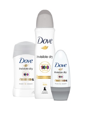 Dove pragnie, by kobiety na całym świecie zmieniły zdanie o kolorach i mogły nosić swoje ulubione ubrania bez względu na ich barwę... Dove Invisible Dry to antyperspirant, który nie pozostawia widocznych śladów na ubraniach w 100 kolorach, zarówno na czerni jak i bieli. Badania potwierdziły, że nie tylko nie plami ubrań, ale także zachowuje wszystkie zalety antyperspirantów Dove - skutecznie redukuje pocenie, a dzięki unikalnej formule z ¼ kremu nawilżającego, pielęgnuje delikatną skórę pod pachami.
