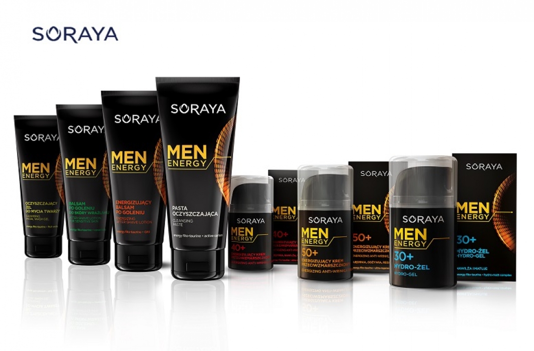 Soraya Men Energy to kosmetyki, które doładowują skórę energią. Ich formuły sprawiają, że skóra staje się gładka i nawilżona, a oznaki zmęczenia i zmarszczki zredukowane. Fito-tauryna zwiększa wydolność centrów energetycznych komórek , wypełnia skórę zdrową energią i wygładza zmarszczki. Dodatkowo jest skutecznym przeciwutleniaczem, chroni więc skórę przed negatywnym wpływem wolnych rodników i nie pozwala rozpędzić się procesowi starzenia.