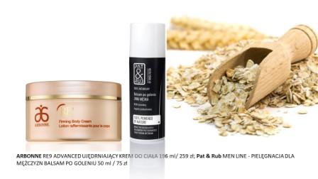 Arbonne Re9 Advanced ujędrniający krem do ciała 196 ml/ 259 zł; Pat & Rub Men Line - pielęgnacja dla mężczyzn balsam po goleniu 50 ml / 75 zł.