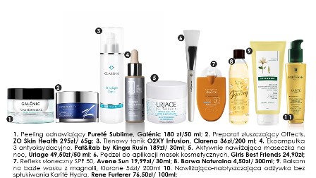 Wypróbuj: Peeling odnawiający Pureté Sublime, Galénic 180zł/ 50ml; Preparat złuszczający Offects, ZO Skin Health 295zł/ 65g; Tlenowy tonik O2XY Infusion, Clarena 200ml/ 36zł; Ekoampułka 3 antyoksydacyjna, Pat&Rab by Kinga Rusin 189zł/ 30ml; Aktywnie nawilżająca maseczka na noc, Uriage 49,50zł/50 ml; Pędzel do aplikacji masek kosmetycznych, Girls Best Friends 24,90zł; Refleks słoneczny SPF 50, Avene Sun 19,99zł/ 30ml; Szampon jajeczny, Barwa Naturalna 4,50zł/ 300ml; Balsam na bazie wosku z magnolii, Klorane 54zł/ 200ml; Nawilżająco-nabłyszczająca odżywka bez spłukiwania Karité Hydra, Rene Furterer 76,50zł/ 100ml;