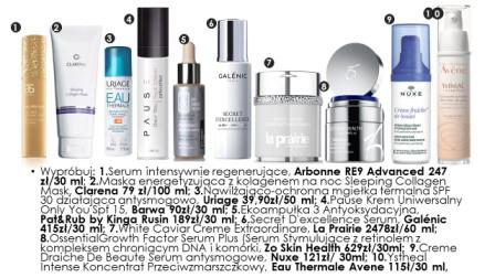 Wypróbuj: Serum intensywnie regenerujące, Arbonne RE9 Advanced 247 zł/30 ml; Pędzel do aplikacji masek kosmetycznych, Sense&Body, Girls’ Best Friend, 24.90 zł; Maska energetyzująca z kolagenem na noc Sleeping Collagen Mask, Clarena 79 zł/100 ml; Nawilżająco-ochronna mgiełka termalna SPF 30 działająca antysmogowo, Uriage 39,90zł/50 ml; Krem Uniwersalny Only You Spf 15, Barwa Pause 90zł/30 ml; Ekoampułka 3 Antyoksydacyjna, Pat&Rub by Kinga Rusin 189zł/30 ml; Secret D'excellence Serum, Galénic 415zł/30 ml; White Caviar Creme Extraordinare, La Prairie 2478zł/60 ml; Ossential Growth Factor Serum Plus (serum stymulujące z retinolem z kompleksem chroniącym DNA i komórki, Zo Skin Health 629zł/30ml; Creme Draiche® De Beaute Serum antysmogowe, Nuxe 121zł/ 30ml; Ystheal Intense Koncentrat Przeciwzmarszczkowy, Eau Thermale Avene 115ł/30 ml,