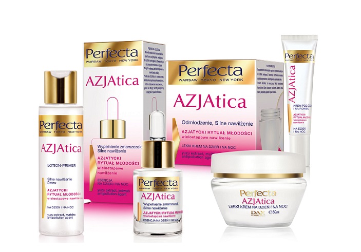 Linia czerwona silnie nawilża cerę i działa przeciwzmarszczkowo, a zadaniem linii białej – oprócz mocnego nawilżenia – jest działanie antipollution, czyli ochrona przed zanieczyszczeniami m.in. takimi jak smog i wchodzącymi w jego skład drobnymi pyłami zwieszonymi PM2,5 powodującymi przedwczesne starzenie się skóry. Linia bazuje na udowodnionym działaniu składników aktywnych pochodzących z Azji, takich jak Centella asiatica, algi, zielona herbata matcha, biały ryż, żeń-szeń, jedwab czy ekstrakt z yuzu. Kosmetyki tworzą wieloetapowy program pielęgnacyjny. W linii czerwonej o działaniu nawilżająco-przeciwzmarszczkowym znajduje się: ryżowe mleczko-lotion do demakijażu lub mycia oczu i twarzy, serum na dzień i na noc, kremy na dzień i na noc 45+, 55+, 65+, krem pod oczy oraz maska. W linii białej o działaniu nawilżająco-ochronnym jest: lekki lotion-primer, esencja, lekki krem, krem-olejek oraz krem pod oczy. Kosmetyki Perfecta AZJAtica stosowane warstwowo, jeden na drugi, tworzą kompletny azjatycki rytuał młodości.