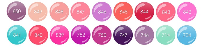 W palecie możemy znaleźć odcienie inspirowane błękitem oceanu (Let’s Go Surfing!, Azure Flower, Into The Mint), przywodzące na myśl kolory letnich kwiatów (Drop Of Amaranth, VIP, Sunny Pink, Sunny Red, Delicate Pink, Stylish Spring, Nice Red, Light Orange), pokrewne barwy lawendy (Lavender, Pale Violet, Purple Crush, Jealy Bean) oraz bardziej delikatne odcienie różane (Light Pink, Rose Skin, Soapy Roses).
