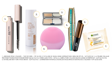 Sprawdź: 1. Arbonne Speak Volumes – Tusz Do Rzęs – 129 Zł/10 G; 2. Pat & Rub By Kinga Rusin Superaktywny Krem Bb Spf 20 – 169 Zł/50 Ml; 3. La Prairie Cellular Treatment Foundation Powder Finish 366,00 Zł/14,2 G; 4. Foreo Luna Fofo – 349 Zł; 5. Garnier Skin Naturals Chusteczki Micelarne Do Demakijażu Z Olejkiem 14,99 Zł/25 Sztuk; 6. L’oréal Paris Volume Million Lashes Waterproof – 63,99 Zł/10,2 Ml; 7. Maybelline New York Tatoo Brow – 52,99 Zł/5 Ml.
