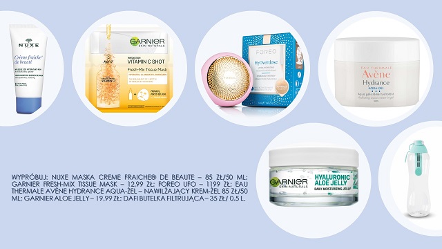 Wypróbuj: Pat&Rub By Kinga Rusin Superaktywny Krem Bb Spf 20 169 Zł/50 Ml; Nuxe Maska Creme Fraiche De Beaute – 85 Zł/50 Ml; Eau Thermale Avène Hydrance Aqua-Żel – Nawilżający Krem-Żel 85 Zł/50 Ml; Foreo Ufo – 1199 Zł; Garnier Hyaluronic Aloe Jelly – 19,99 Zł; Garnier Fresh-Mix Tissue Mask – 12,99 Zł; Dafi Butelka Filtrująca – 35 Zł/ 0,5 L.