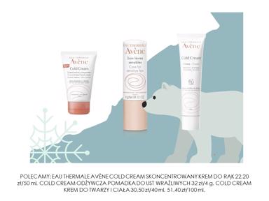 Polecamy: Eau Thermale Avène Cold Cream Skoncentrowany Krem Do Rąk 22,20 Zł/50 Ml, Cold Cream Odżywcza Pomadka Do Ust Wrażliwych 32 Zł/4 G, Cold Cream Krem Do Twarzy I Ciała 30,50 Zł/40 Ml, 51,40 Zł/100 Ml.