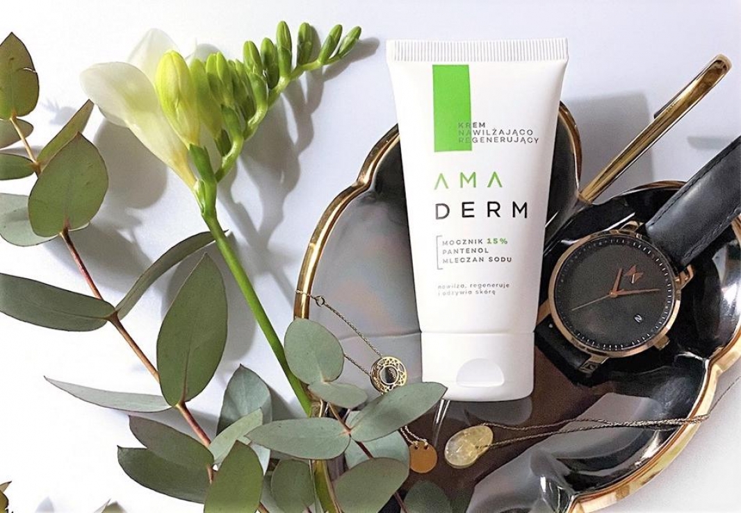 Amaderm krem nawilżająco-regenerujący z 15% zawartością mocznika stworzono z myślą o zapewnieniu prawidłowego poziomu nawilżenia skórze dłoni, łokci i kolan, które są szczególnie narażone na odwodnienie i przesuszenie wywołane czynnikami zewnętrznymi, ale także wysuszenie związane z terapiami dermokosmetycznymi. Krem skutecznie nawilża i regeneruje skórę, czyniąc ją gładką i miękką w dotyku. Jego starannie skomponowana formuła wpływa na wygładzenie nawet bardzo szorstkiej skóry, poprawiając jej jędrność i zwiększając elastyczność. Krem świetnie sobie radzi z problemem nadmiernego rogowacenia naskórka łokci i kolan, a regularnie stosowany zabezpiecza i chroni przed wysuszeniem, pękaniem oraz łuszczeniem się skóry.