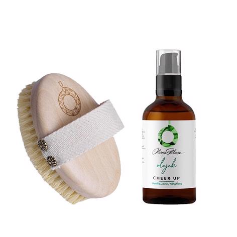 Olivia Plum - Zestaw Pielęgnacyjno-Łagodzący - Szczotka do Masażu i Olejek Cheer Up