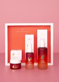 Kosmetyki do łatwego wieczornego rytuału: krem na noc, który wspomaga regenerację skóry i usuwa z niej oznaki zmęczenia, łagodny zielony płyn micelarny i hydrolat-mgiełka nawilżająca z różą i kaktusem.