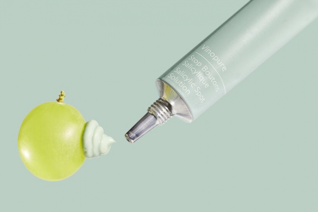 W tym roku Caudalie przedstawia swoją kolejną innowację z tej linii na zlokalizowane niedoskonałości: Punktową Kurację z Kwasem, która w ciągu 1 godziny wyraźnie redukuje istniejące wypryski*. Goi, wysusza i koryguje zaczerwienienia, dzięki jasnozielonemu kolorowi. Jego niewielki rozmiar, pozwala nosić go stale przy sobie i używać przez cały dzień. 97% składników pochodzenia naturalnego. Koktajl składników naturalnie skutecznych w walce z niedoskonałościami: