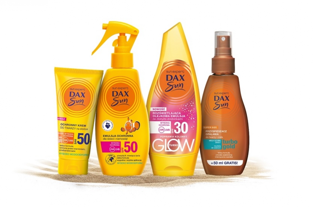 Dax Sun od ponad 30 lat troszczy się, by przebywanie na słońcu było dla naszej skóry jak najbardziej bezpieczne. W tym roku marka wprowadza dwie gorące nowości: Dax Sun Turbo Glow rozświetlającą olejkową emulsję ze złotymi drobinkami SPF 30 oraz Dax Sun emulsję ochronną dla dzieci i niemowląt SPF 50.