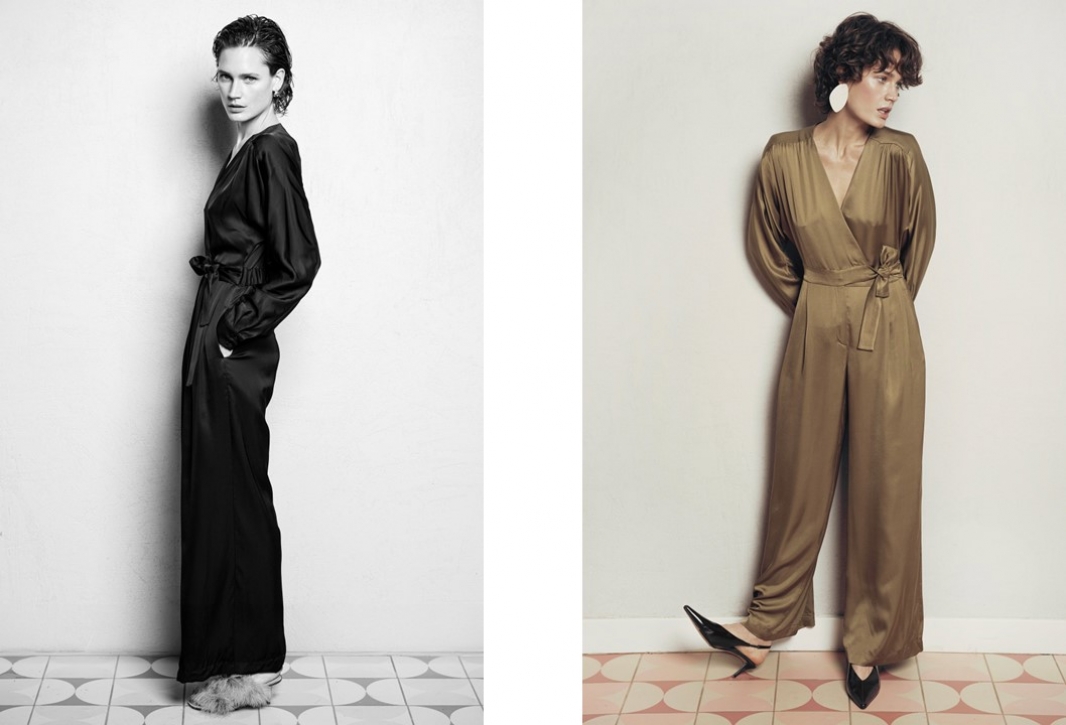 Spektakularna ikona kolekcji. Wyróżniają go szerokie nogawki oraz nietoperzowe rękawy. Dostępny w dwóch wersjach: złoto-oliwkowej i klasycznej czerni.