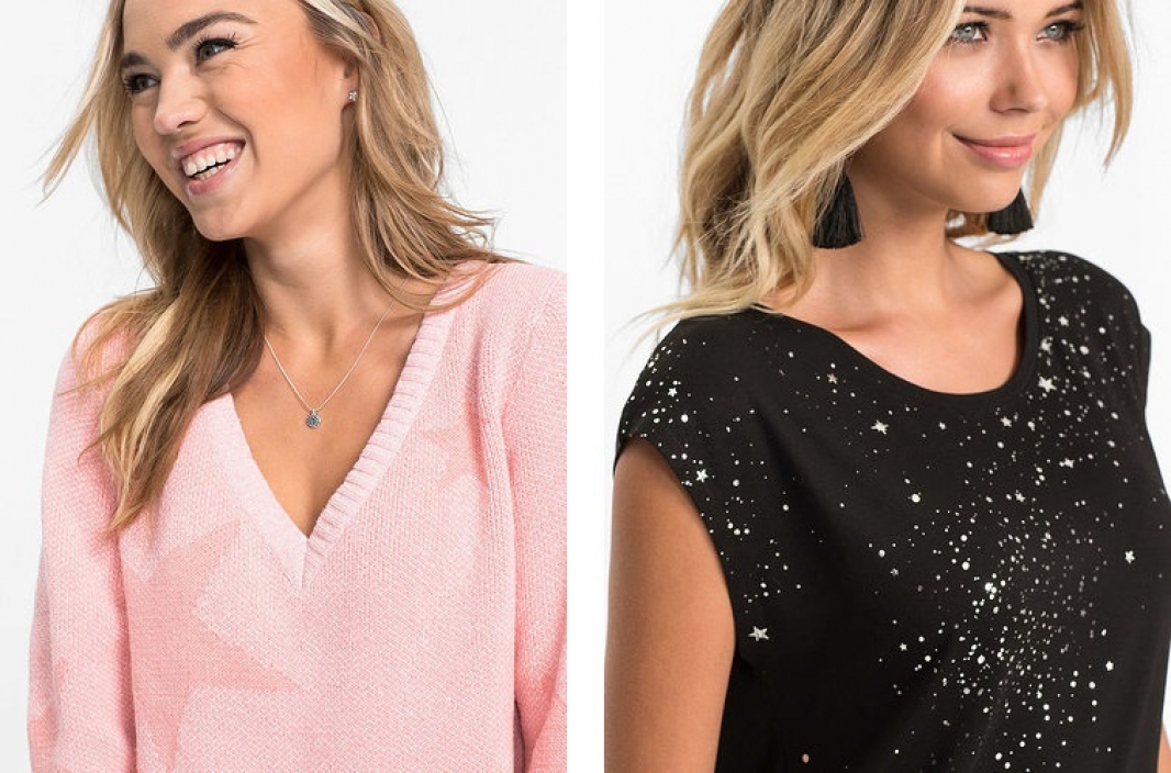 Dodanie do naszej codziennej stylizacji błyszczących printów i haftów sprawi, że pokażemy się w nowej odsłonie. Jednocześnie dzięki dużej swobodzie w wyborze, nadal możemy czuć się komfortowo, decydując się na delikatny akcent. Podczas tegorocznej gwiazdki mamy szansę na eksplozję błysku godnego prawdziwej gwiazdy! Wystarczy tylko spojrzeć w niebo, a potem obejrzeć kolekcję bonprix pełną gwiazd.