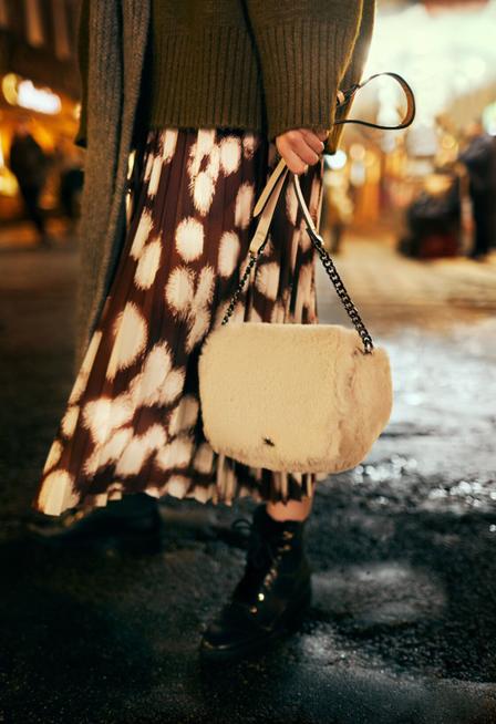 Elementy, które składają się na każdą zimową garderobę — swetry, kardigany, płaszcze i szale — wyskakują z kapelusza razem z dodatkami wołającymi „impreza!”, takimi jak sandały ozdobione brokatem i torebki do ręki, tworząc nowy wymiar stylu. W tym sezonie codzienność wypełnimy magią.