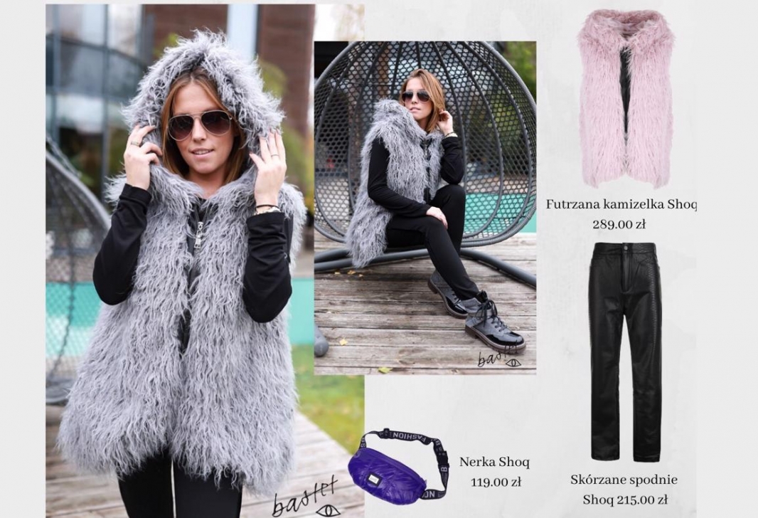 Trend na futrzane kurteczki i kamizelki zazwyczaj powraca w sezonie jesienno-zimowym. To idealna propozycja dla kobiet, przemieszczających się na co dzień samochodem. To również alternatywa dla grubego, wełnianego swetra. Jak nosić futerko? Na nieskończenie wiele sposobów, natomiast propozycja marki SHOQ stawia w tym przypadku na prostotę: skórzane, czarne spodnie, wygodny t-shirt, praktyczna nerka. Futrzana kamizelka jest dostępna w dwóch kolorach, różowym i szarym.