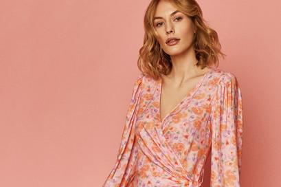 Najnowsza kolekcja marki Answear zatytułowana „Pastel Perfection” to staranna selekcja dziewczęcych ubrań na granicy z miejskim szykiem. W sesji wizerunkowej główną rolę gra sukienka w delikatne kwiatki. Jest niezwykle dziewczęca. Rozszerzane rękawy zwężane ku dołowi , zapinane na niewidoczny guziczek dodają jej romantyczności. Delikatny dekolt o kształcie litery V pięknie wydłuża sylwetkę. Podkreślona talia to kwintesencja dziewczęcego stylu.