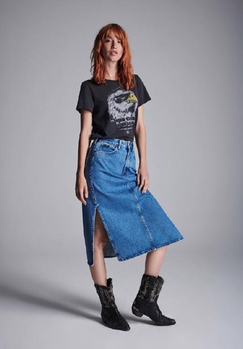 Kolekcja damska jest efektownym mariażem stylu dziewczęcego z niepokornym. Delikatne koszule w stylu preriowym ozdobione haftem angielskim oraz plisowane bluzki kuszą romantycznością i zalotnością, ale kontrapunktem dla nich są ubrania z denimu w surowym charakterze. Całość tworzy nieco nostalgiczny look podszyty buntowniczym duchem. W kolejnej części kolekcji jesień-zima 2020 Lee Jeans również będzie czerpać buntowniczą energię i retro inspiracje ze swoich przepastnych archiwów, dodając damskim ubraniom z denimu niepowtarzalnego uroku.