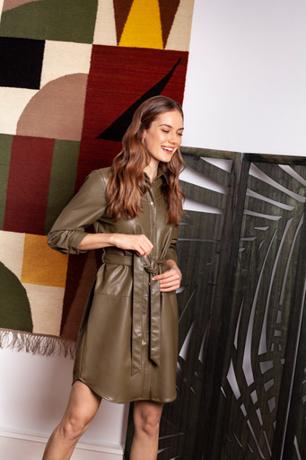 W tym sezonie szczególnie modne będą pastelowe odcienie. Znajdziemy je w miękkich dzianinach, otulających kurtkach typu puffer czy trendowych torebkach. Projektanci Mohito postawili na szeroką paletę delikatnych barw, od pudrowego różu i delikatnego błękitu, po stylowe beże oraz szarości. W kolekcji na uwagę zasługują wygodne bluzy i kardigany czy trapezowa sukienka w graficzny motyw drobnej łączki. W połączeniu z charakterystycznymi botkami oraz pastelową torebką tworzy lekki, zwiewny look z nutą kobiecości. Elementem wyróżniającym kolekcję jest z pewnością ciemnozielona szmizjerka z materiału imitującego skórę. Sukienka nada stylu każdej stylizacji.
