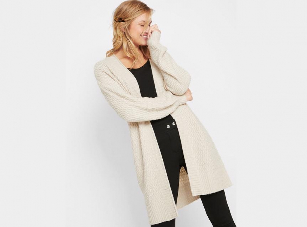 Długi sweter to najlepsze zastępstwo dla cienkiego płaszcza. Tej jesieni stawiamy na te w neutralnych kolorach, z guzikami lub bez żadnego zapięcia. Bardzo modne są także kardigany w nieregularne, geometryczne wzory.