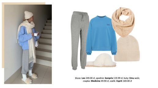 Wybierając bluzę w wyrazistym kolorze najlepiej postawić na szare i beżowe dodatki, które nie będą odwracały uwagi od głównego elementu stroju, a wręcz przeciwnie - idealnie go uzupełnią. Ciekawą formą przełamania sportowego charakteru jest dobranie do stylizacji futrzanych kapci, które są nie tylko wygodne, ale też ciepłe.