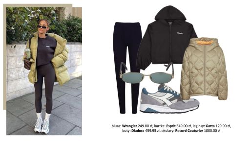 Pikowane, lekko oversizowe kurtki nie wychodzą z mody i wyjątkowo dobrze sprawdzają się w połączeniu z klasyczną bluzą i legginsami. Stworzymy wtedy sportowy look, wprost idealny na spacer czy kawę na mieście. Obowiązkowym dodatkiem są buty sportowe w stylu vintage i dłuższe prążkowane białe skarpetki.