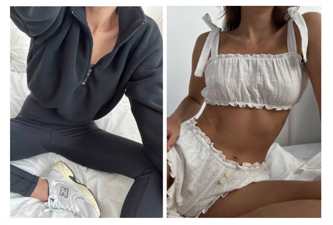 Zestaw w którego skład wchodzi krótka bluza z wysokim kołnierzykiem na suwak oraz talią i rękawami wykończonymi gumkami, a także dresowe, zwężane spodnie w tym samym kolorze. To najlepszy outfit na wiosenny spacer w blasku pierwszych promieni słońca.