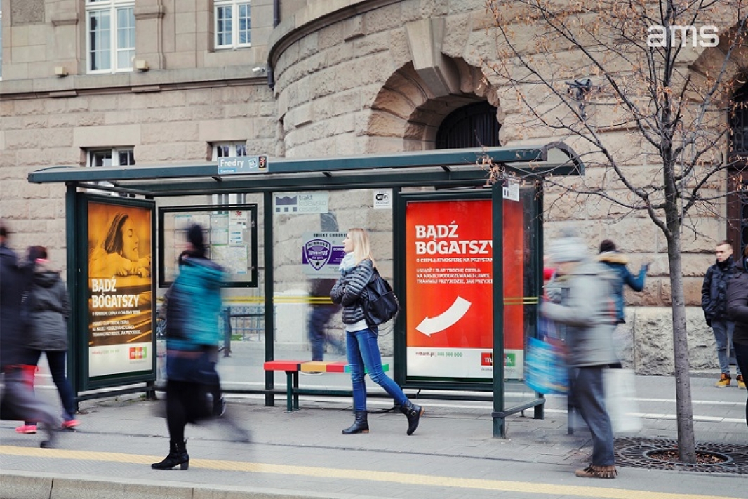 W wybranych wiatach przystankowych AMS jest już możliwość zainstalowania podgrzewanej ławki. Dzięki specjalnej instalacji siedzisko ławki grzeje przez całą dobę. W najnowszej kampanii eKonta, mBank zadbał o ciepłą atmosferę na przystankach w Krakowie, Poznaniu i we Wrocławiu. To pierwszy w Polsce reklamodawca, który skorzystał z tego rozwiązania. Na potrzeby kampanii zostało zainstalowanych 8 takich ławek. „Bądź bogatszy o ciepłą atmosferę na przystanku” oraz „Bądź bogatszy o odrobinę ciepła w chłodny dzień” to informacje, które możemy przeczytać na plakatach znajdujących się na przystankach.