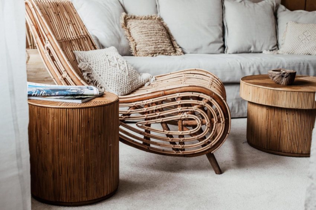 Nieodzownym meblem jest też oczywiście niewielki, funkcjonalny stolik. Może to być np. stolik/taboret Monnarita Woody, który znakomicie sprawdza się w wielu rolach. Może służyć jako stolik kawowy, stolik pomocniczy, szafka nocna, podstawka pod kwiat, taboret czy po prostu stojąca dekoracja. Jest on wykonany z jednego kawałka drewna tekowego, dzięki czemu każdy egzemplarz jest wyjątkowy, ma swój własny odcień, kształt i fakturę. Charakteryzując się surowym, naturalnym designem, Woody doskonale wkomponuje się w nowoczesne lub boho wnętrza. Rattanowy stolik Jay Tegal wyróżnia natomiast ciekawy splot i ciepły miodowy odcień, przez co stanowi kwintesencję stylu rodem z Indonezji. Można na nim postawić np. bambusową misę na wino Monnarita Vera. Jej wyprofilowany i oryginalny kształt zapewnia wyjątkową ekspozycję butelki wina czy szampana, ponadto misa może służyć jako patera na owoce lub inne przekąski. Tę funkcję spełni również taca Monnarita Paloma, idealna po podania śniadania czy lunchu. Jest stabilna, wygodna do przenoszenia i bardzo wytrzymała. Można też jej użyć jako element dekoracyjny, służący wyeksponowaniu i uporządkowaniu innych akcesoriów.