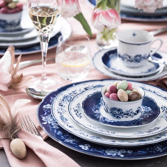 Bardziej wyrazistą oprawę wielkanocnego stołu zapewni serwis Sentiment, który nasyci wnętrze głębokim, pięknym odcieniem kobaltu. Jednocześnie przyniesie wiosenne akcenty, gdyż jest zdobiony unikalnym, ręcznie litografowanym motywem rozkwitających kwiatów. Stół zastawiony tą porcelaną nie wymaga już wielu akcentów dekoracyjnych. Chłodny, niebieski odcień warto połączyć z miękką tkaniną w kolorze pudrowego różu, a jako dodatki wystarczą małe pisanki, pastelowe piórka, przezroczyste świeczniki i delikatne kwiaty.