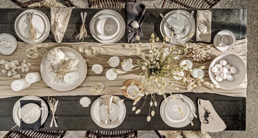 Z czym zestawiać kamionkowe kolekcje? Najlepszym wyborem będą naturalne materiały – drewniane dodatki, miękkie, lniane tkaniny, świeże kwiaty, muszelki, kamyki czy gałązki. To kompozycja idealna do wiosenno-letnich spotkań przy stole z bliskimi.