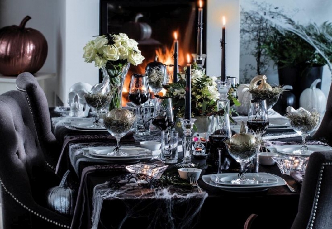 komponuje z dodatkami w odcieniach srebra, złota czy perłowego różu. Do tego żywe kwiaty, na których przysiądą pająki, trochę pajęczej nici i można czekać na to, co przyniesie halloweenowa noc – cukierki czy psikusy…