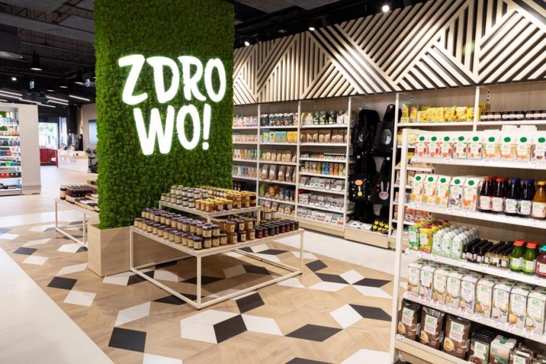 Zdobi ją ogromna ściana z mchu z napisem „Zdrowo!”. Wielbiciele zdrowego odżywiania znajdą tu m.in. przekąski, bogaty wybór produktów wegańskich, bezglutenowych i ekologicznych, wyrobów regionalnych, w tym miodów z polskich pasiek. Na półkach znalazły się też ekologiczne włoskie makarony (Alb Natur), ekologiczne kawy i herbaty (Destination) oraz największy w Polsce wybór produktów marki własnej Rossmanna, czyli cieszącej się wielkim powodzeniem enerBiO.