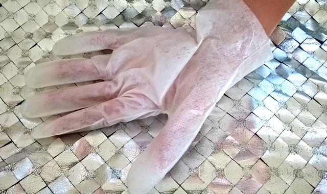 Muszę przyznać, że po nałożeniu maski na dłonie moje ręce dotknął lekki i przyjemny chłodek. Maskę nałożyłam wieczorem, po jej nałożeniu mogłam oglądać film, a moje ręce przechodziły zabieg regeneracji. Maska jest naprawdę dobrze przygotowana, bo substancje czynne nie wyciekają z rękawiczek tylko są wchłaniane przez skórę rąk. Już po pierwszym użyciu efekt jest dobrze widoczny, widać wyraźnie zwiększone nawilżenie skóry na rękach oraz poprawę kolorytu rąk. Kolejnym plusem są zmniejszenie podrażnień oraz redukcja maleńkich słonecznych plamek, które miałam na rękach.
