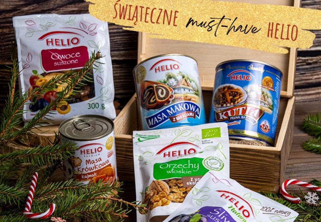 Kolejnym must- have produktem na nadchodzące święta powinna być pełna bakalii kutia Helio - idealna do przyrządzenia najpopularniejszych, tradycyjnych potraw, które co roku obowiązkowo goszczą na wigilijnym stole. Nie zapomnij także o owocach suszonych Helio, które przydadzą się do przygotowania tradycyjnego wigilijnego kompotu. Ponadto, w Twojej świątecznej spiżarni nie może też zabraknąć m.in. suszonych moreli, śliwek, rodzynek czy żurawiny z linii bez konserwantów Helio Natura, ale też skórek pomarańczowych czy orzechów - włoskich, prażonych laskowych oraz naszej nowości- pieczonych nerkowców bez dodatku soli i tłuszczu.